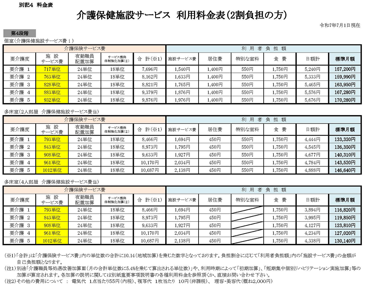 >>介護保健施設サービス 利用料金表(2割負担の方)のプリントはこちら